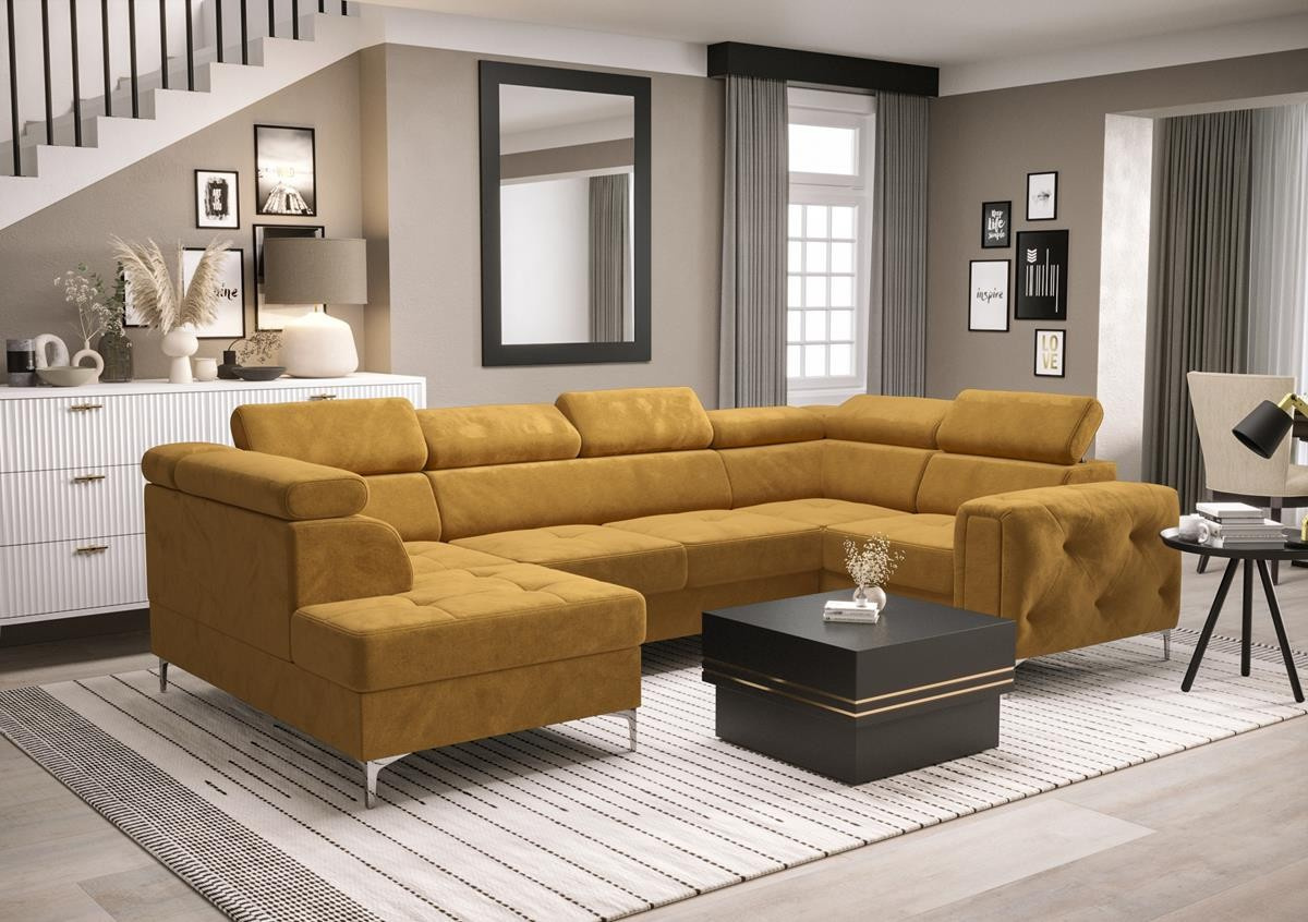 Rohová sedací souprava ORION MAX II s funkcí spaní 165x350x185 cm - žlutá , pravá