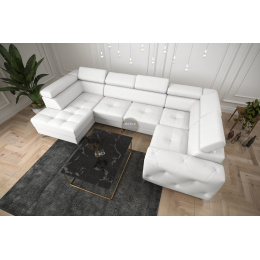 Rohová sedací souprava ORION MAX II s funkcí spaní 165x350x185 cm přírodní kůže - bílá kůže, pravá