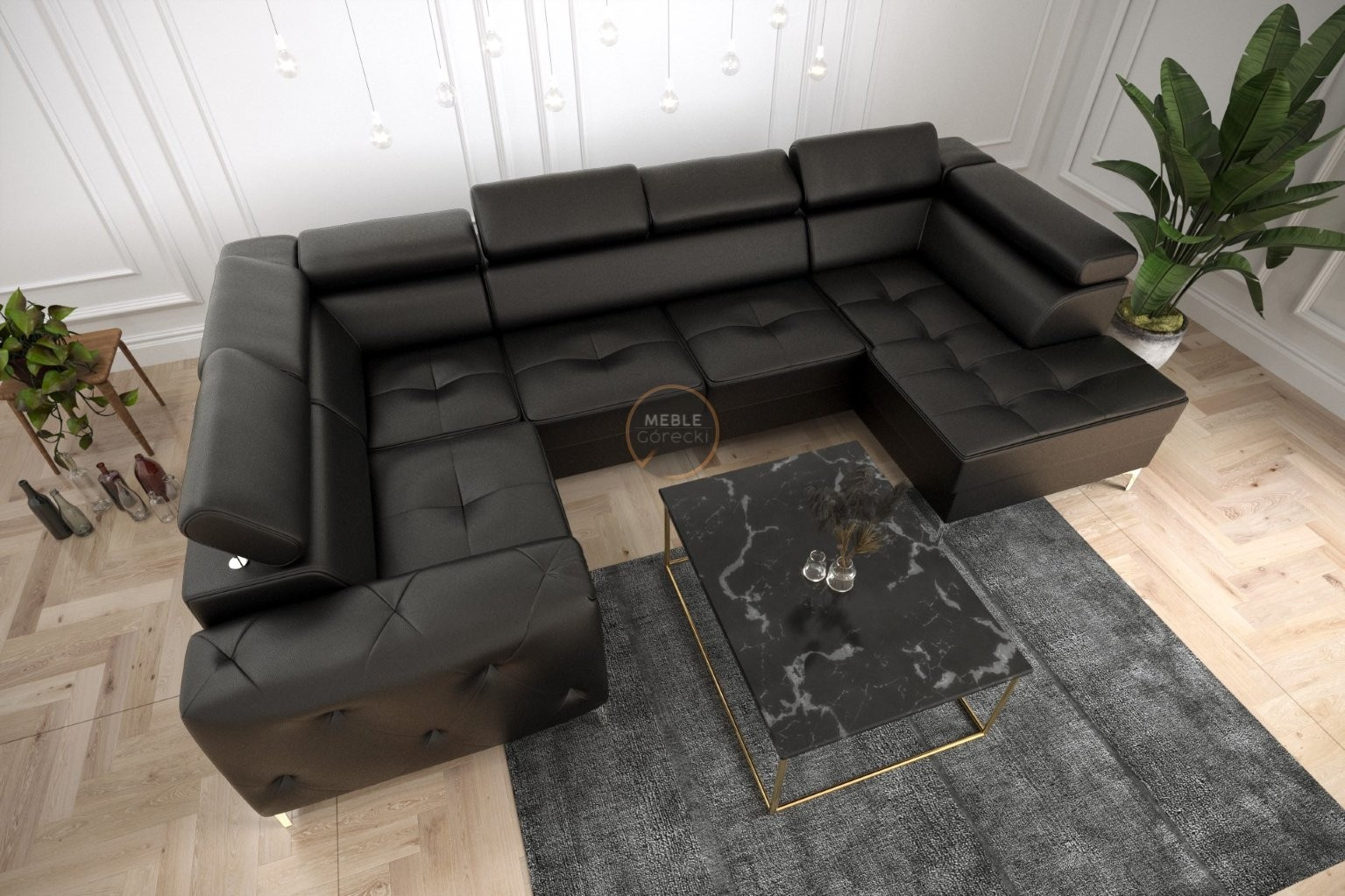 Rohová sedací souprava ORION MAX II s funkcí spaní 165x350x185 cm přírodní kůže - černá kůže, levá