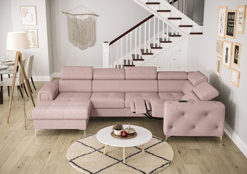 Rohová sedací souprava ORION MAX III , relax s funkcí spaní 165x320x190 cm - růžová, pravá