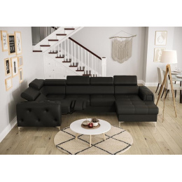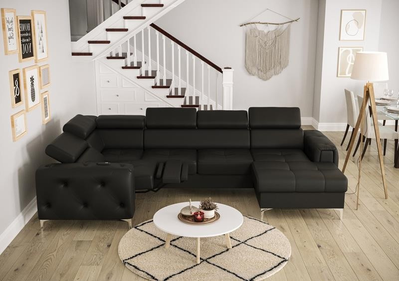 Rohová sedací souprava ORION MAX III , relax s funkcí spaní 165x320x190 přírodní kůže - černá kůže, levá