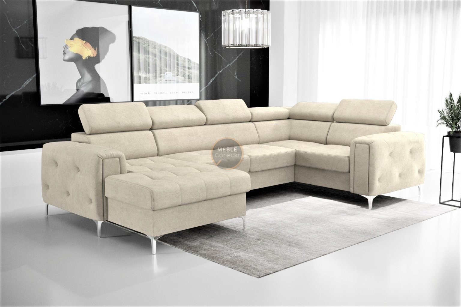 Kolekce čalouněného nábytku Orion je něco, co nikde jinde nenajdete! Charakteristickým prvkem jsou krásně zdobené, prošívané boky ve stylu glamour. Kromě estetických prvků stojí za to věnovat pozornost dokončení v podobě nastavitelných opěrek hlavy, které usnadní přizpůsobení výšky opěradla tak, aby byla pro vás ideální. Vysoké 13 cm kovové nohy podtrhují celek a dodávají konstrukci lehkost.