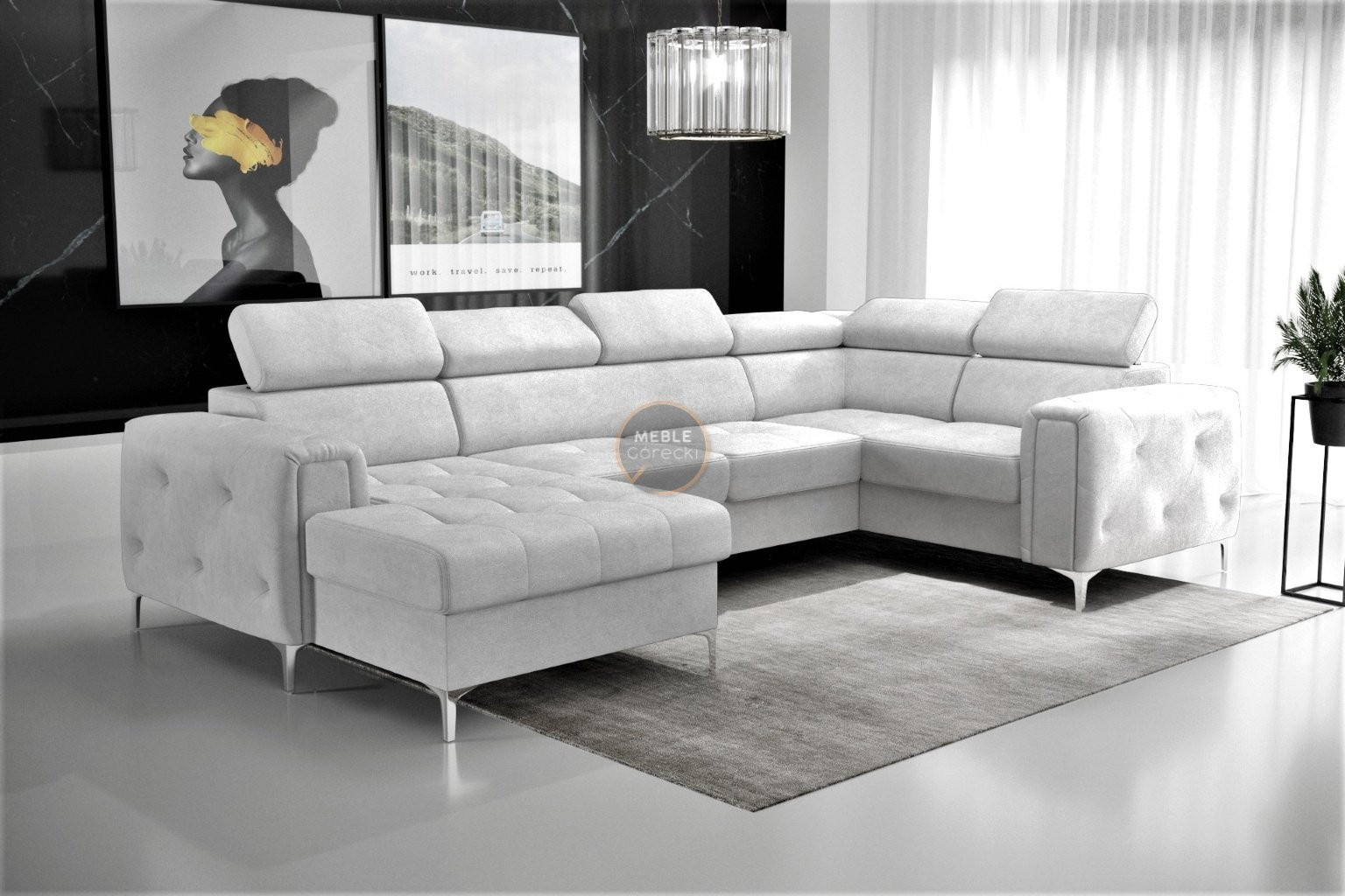Kolekce čalouněného nábytku Orion je něco, co nikde jinde nenajdete! Charakteristickým prvkem jsou krásně zdobené, prošívané boky ve stylu glamour. Kromě estetických prvků stojí za to věnovat pozornost dokončení v podobě nastavitelných opěrek hlavy, které usnadní přizpůsobení výšky opěradla tak, aby byla pro vás ideální. Vysoké 13 cm kovové nohy podtrhují celek a dodávají konstrukci lehkost.