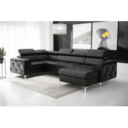 Rohová sedací souprava ORION MAX III s funkcí spaní 165x320x185 cm přírodní kůže - černá kůže, Levá strana