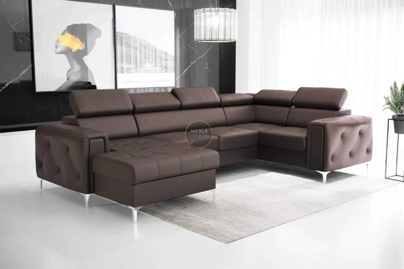 Kolekce čalouněného nábytku Orion je něco, co nikde jinde nenajdete! Charakteristickým prvkem jsou krásně zdobené, prošívané boky ve stylu glamour. Kromě estetických prvků stojí za to věnovat pozornost dokončení v podobě nastavitelných opěrek hlavy, které usnadní přizpůsobení výšky opěradla tak, aby byla pro vás ideální. Vysoké 13 cm kovové nohy podtrhují celek a dodávají konstrukci lehkost.
