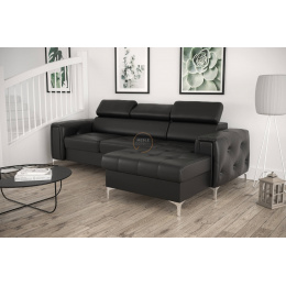 Rohová sedací souprava ORION MINI s funkcí spaní 255x165 cm přírodní kůže - černá kůže, pravá