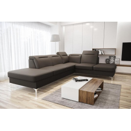 Rohová sedačka má nastavitelné, vícestupňové opěrky hlavy, chromované ozdobné nožky, sedáky s ozdobným prošíváním a především je vyrobena na vlnitých pružinách a vysoce elastické pěně, což zajišťuje vysoký komfort používání a zabraňuje deformaci nejčastěji používaných ploch. POZOR!!! Na aranžmá je zobrazen rohový gauč bez funkce spaní.