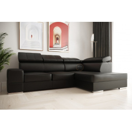 Rohová sedací souprava ROYAL I 260×185 přírodní kůže - černá kůže , pravá