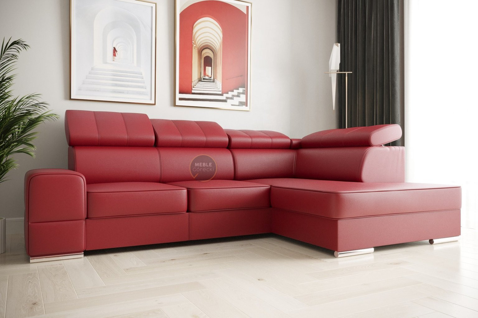 Rohová sedací souprava ROYAL I 260×185 přírodní kůže - červená kůže , pravá