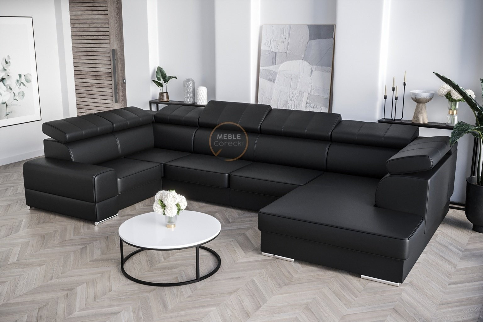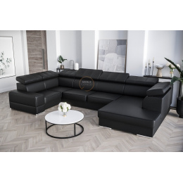 Rohová sedací souprava ROYAL MAX I 210x375x185 - černá eko kůže , levá