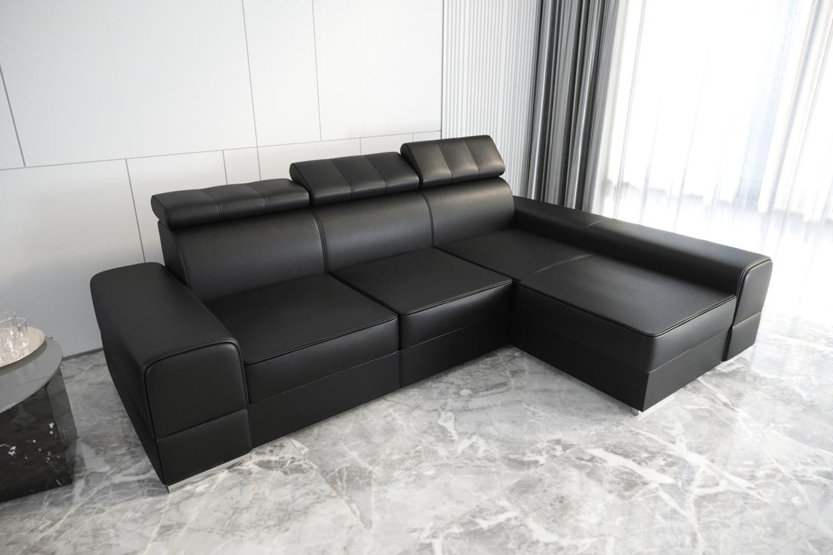 Rohová sedací souprava ROYAL přírodní kůže 295x185 - černá kůže , levá