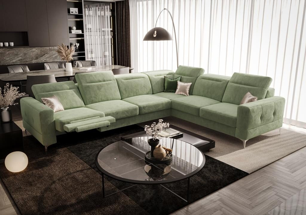 Rohová sedací souprava s funkcí , relax MALIBU MAX 320x250 - pravá, olivová