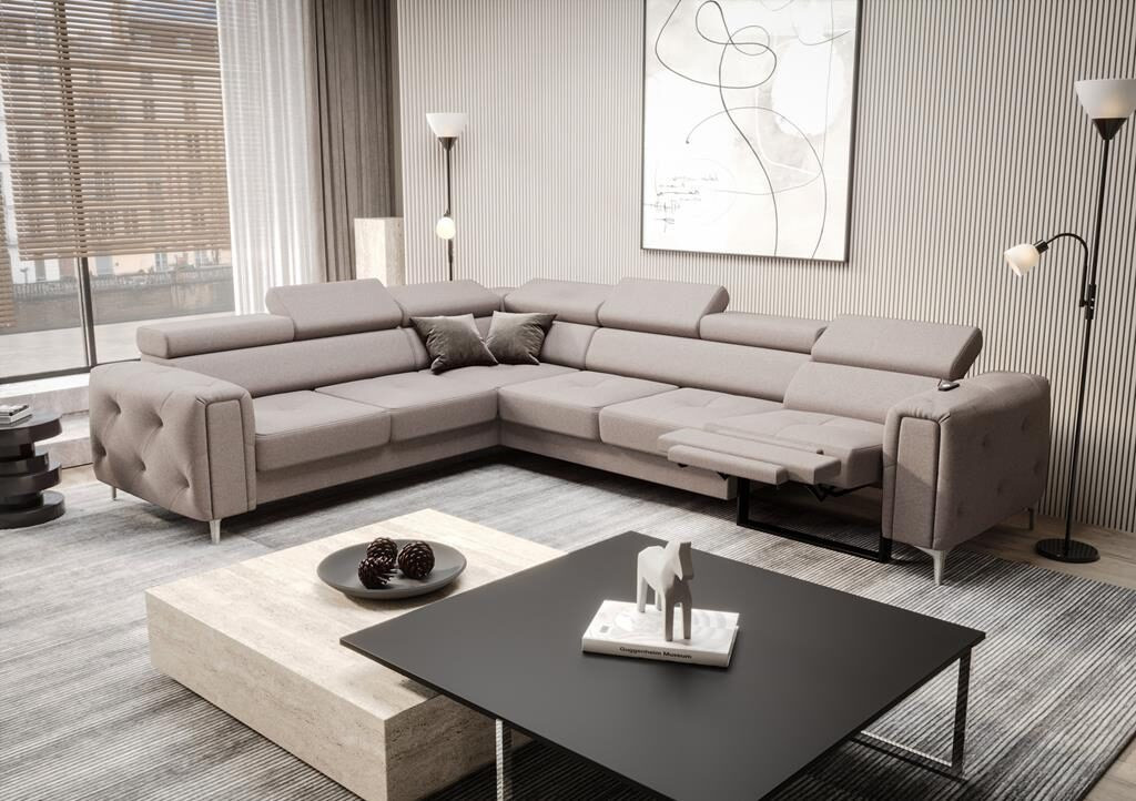 Rohová sedačka s relaxační funkcí Orion I s funkcí spaní, nastavitelnými opěrkami hlavy, ozdobným prošíváním a možností výběru nohou je dokonalým spojením komfortu a elegance. Úložný prostor na ložní prádlo a prošívaná strana ve stylu glamour z něj činí výjimečný kus nábytku, který splní očekávání i těch nejnáročnějších uživatelů. Prohlédni si celou kolekci Orion. Vyberte si rohovou sedačku, která dodá vašemu interiéru jak funkčnost, tak styl.