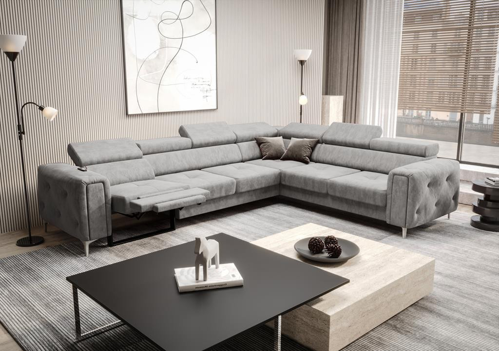 Rohová sedačka s relaxační funkcí Orion I s funkcí spaní, nastavitelnými opěrkami hlavy, ozdobným prošíváním a možností výběru nohou je dokonalým spojením komfortu a elegance. Úložný prostor na ložní prádlo a prošívaná strana ve stylu glamour z něj činí výjimečný kus nábytku, který splní očekávání i těch nejnáročnějších uživatelů. Prohlédni si celou kolekci Orion. Vyberte si rohovou sedačku, která dodá vašemu interiéru jak funkčnost, tak styl.