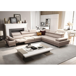 Rohová sedací souprava s funkcí spaní a relaxace GALAXY MAX 350x280 cm - béžová, pravá