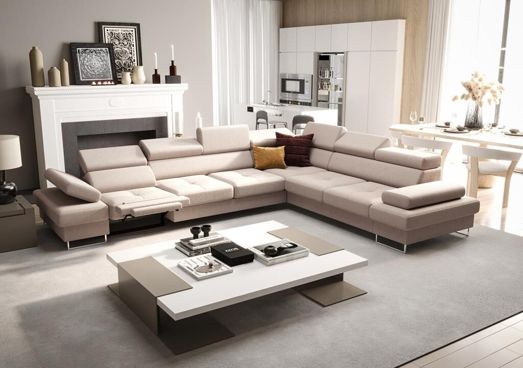 Rohová sedací souprava s funkcí spaní a relaxace GALAXY MAX 350x280 cm - starorůžová ,levá