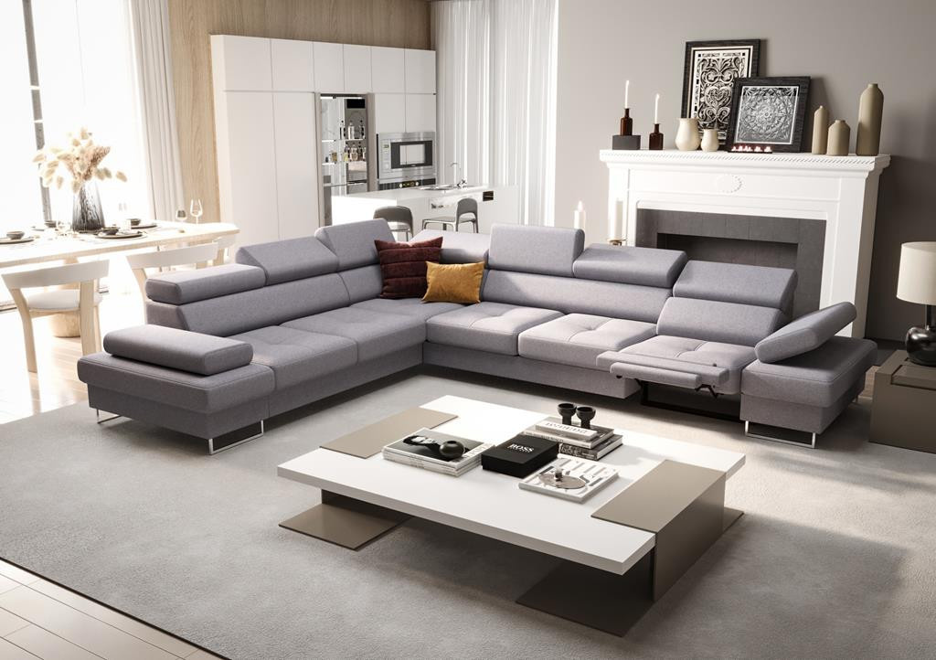 Rohová sedací souprava s funkcí spaní a relaxace GALAXY MAX 350x280 cm - volitelný odstín - levá