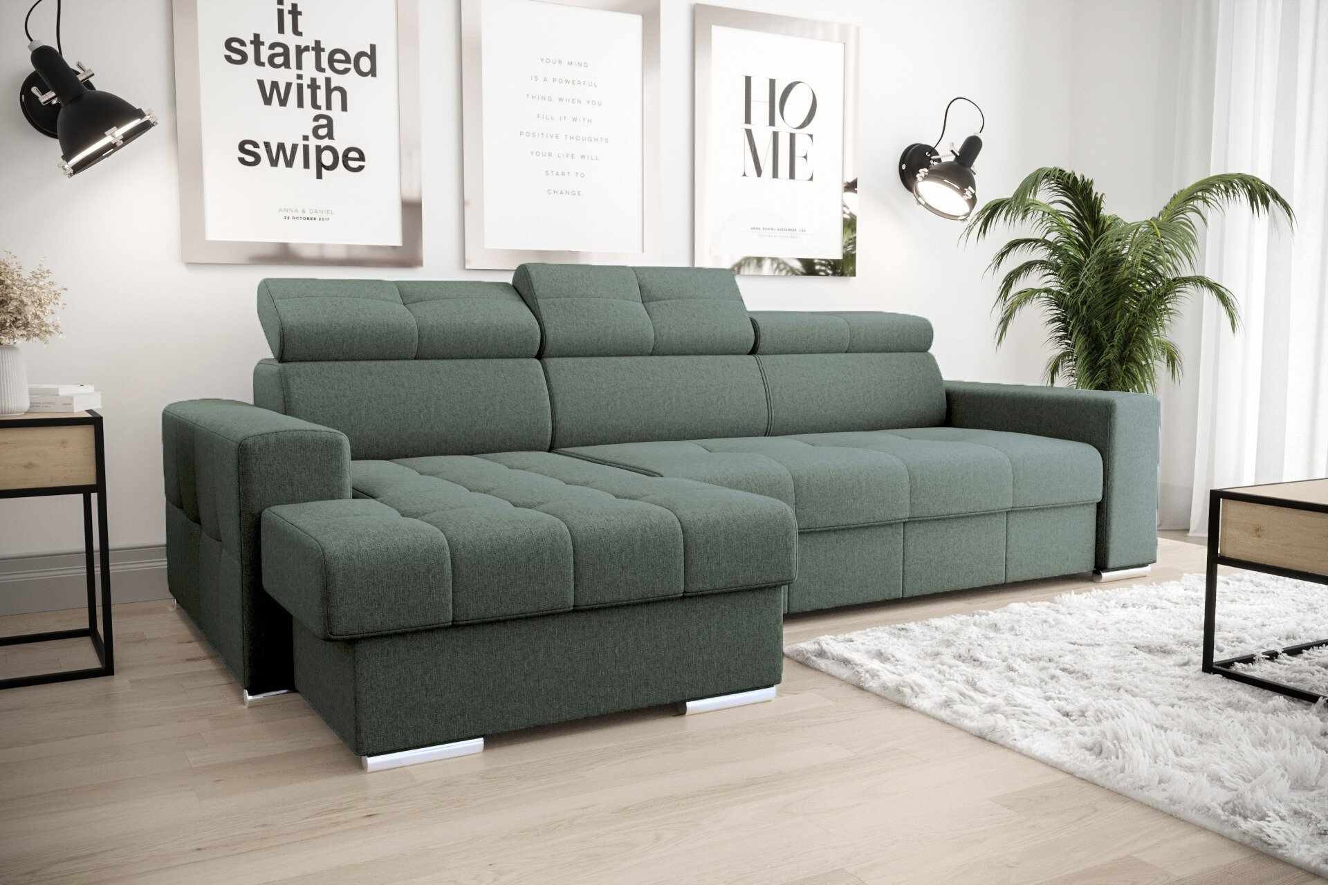 Rohová sedací souprava s funkcí spaní MARGO 160x250 zelená MY 37 - Rychlé doručení