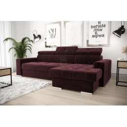 Rohová sedací souprava s funkcí spaní MARGO 160x250 - pravá, odstíny bordó