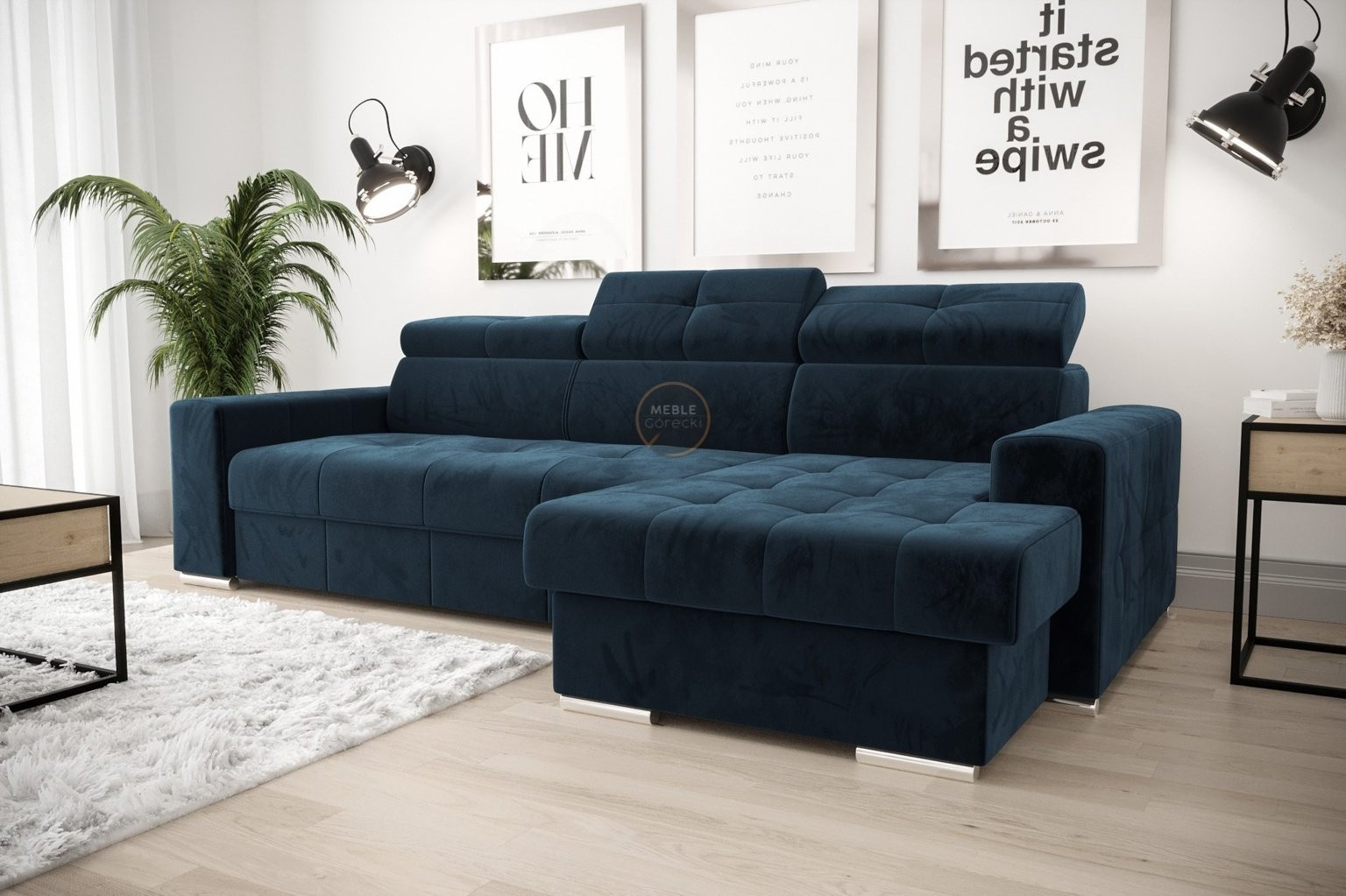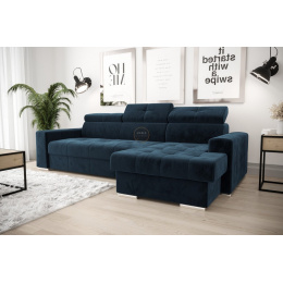 Rohová sedací souprava s funkcí spaní MARGO 160x250 - modrá , pravá
