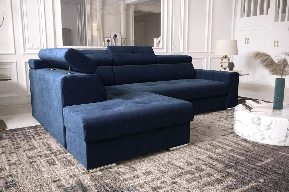 Rohová sedací souprava s funkcí spaní MARGO I 260×185 - modrá , levá