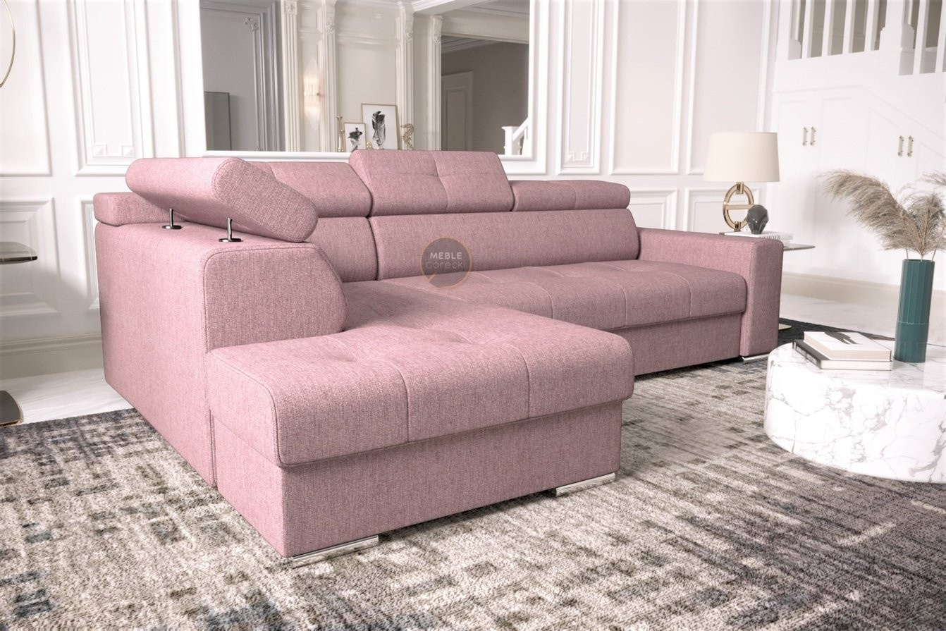 Rohová sedací souprava s funkcí spaní MARGO I 260×185 - levá, růžová