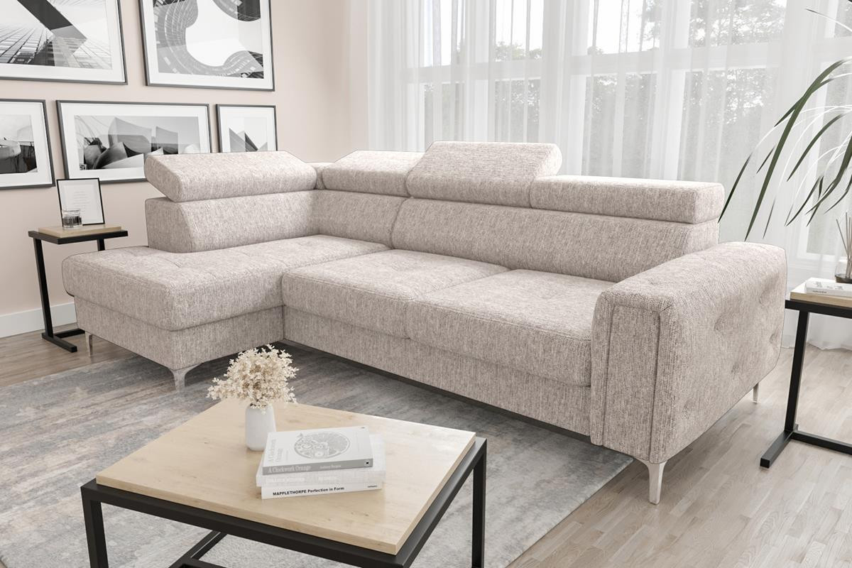 Rohová sedací souprava s funkcí spaní ORION 165x255 - béžová, levá