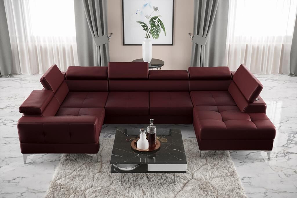 Rohová sedací souprava TOSCANIA MAX I 170x350x185 cm přírodní kůže - levá, Bordová kůže