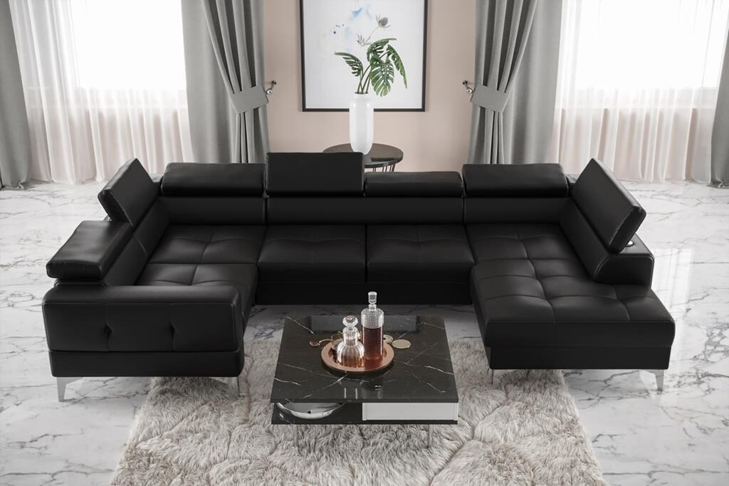Rohová sedací souprava TOSCANIA MAX I 170x350x185 cm přírodní kůže - černá kůže , levá