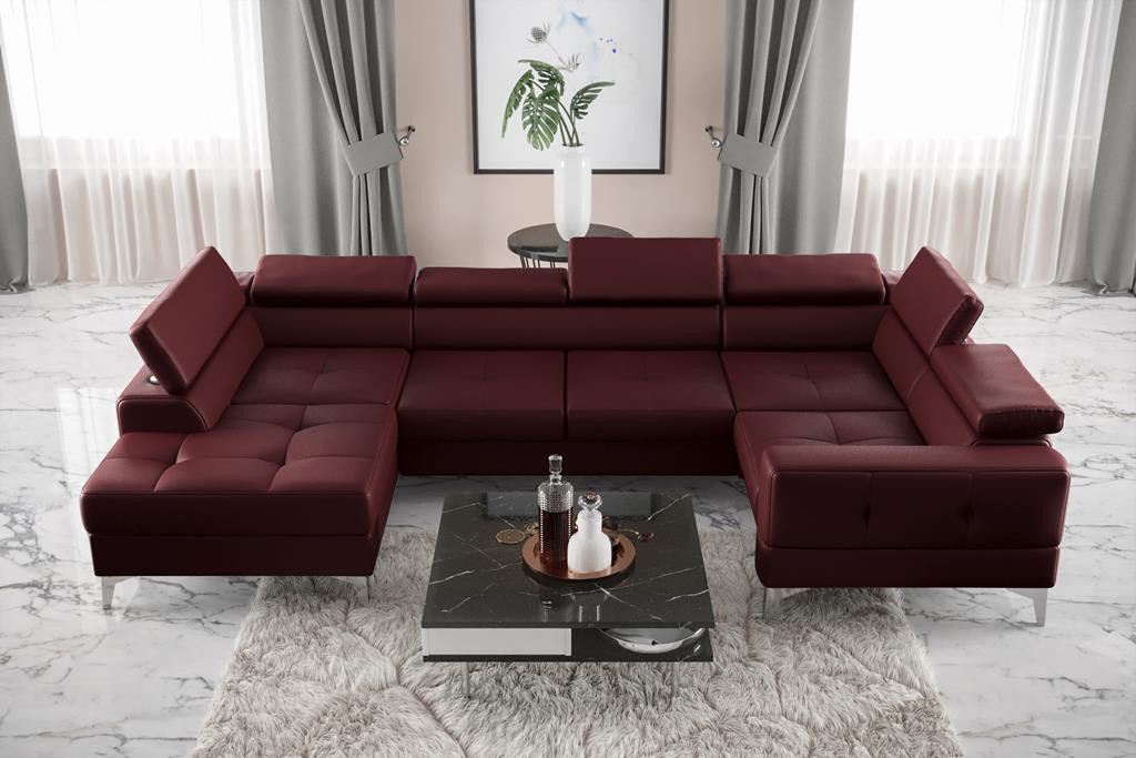 Rohová sedací souprava TOSCANIA MAX I 170x350x185 cm přírodní kůže - pravá, Bordová kůže