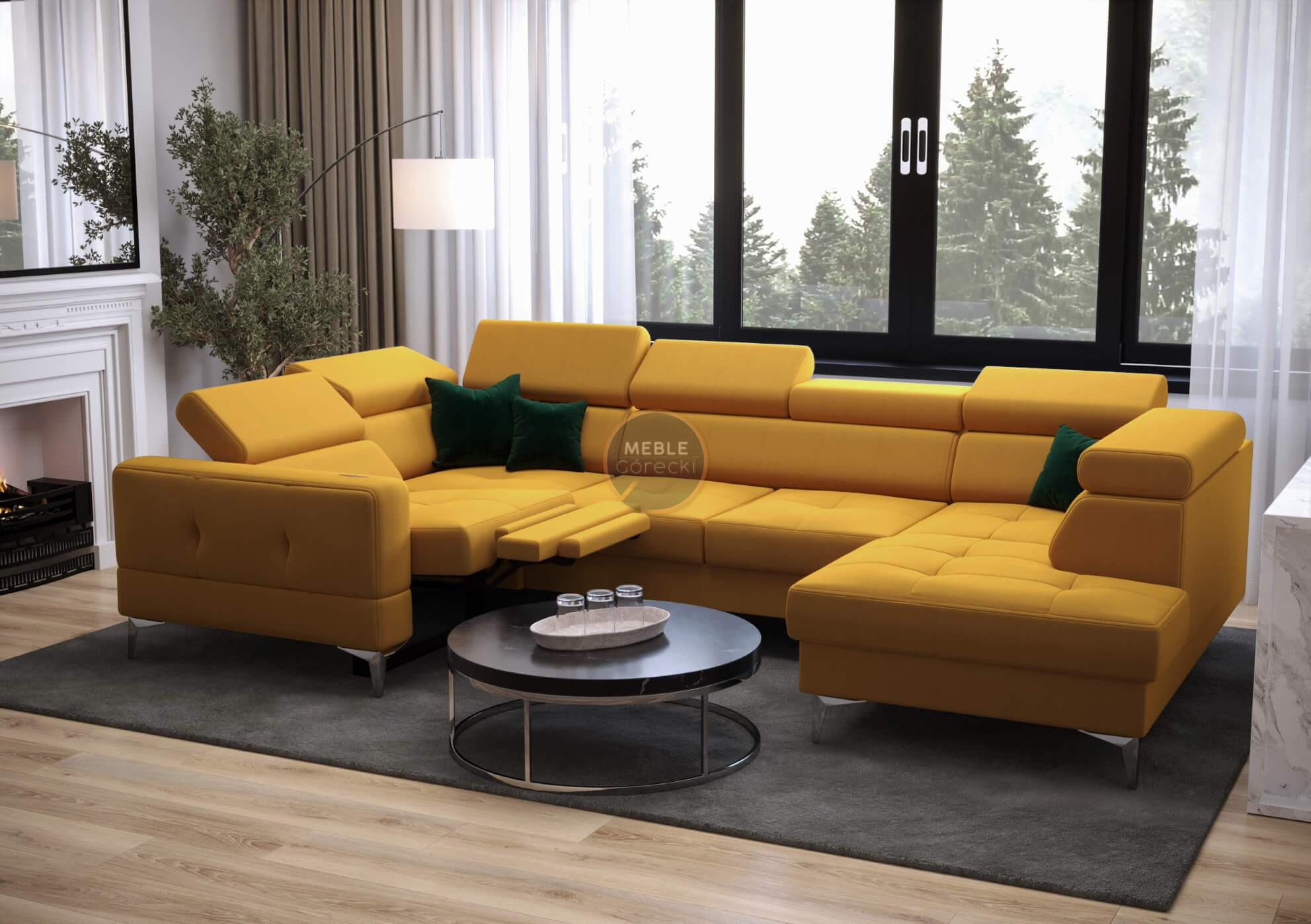 Rohová sedací souprava TOSCANIA MAX I , relax s funkcí spaní 170x350x185 cm - žlutá , levá