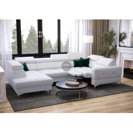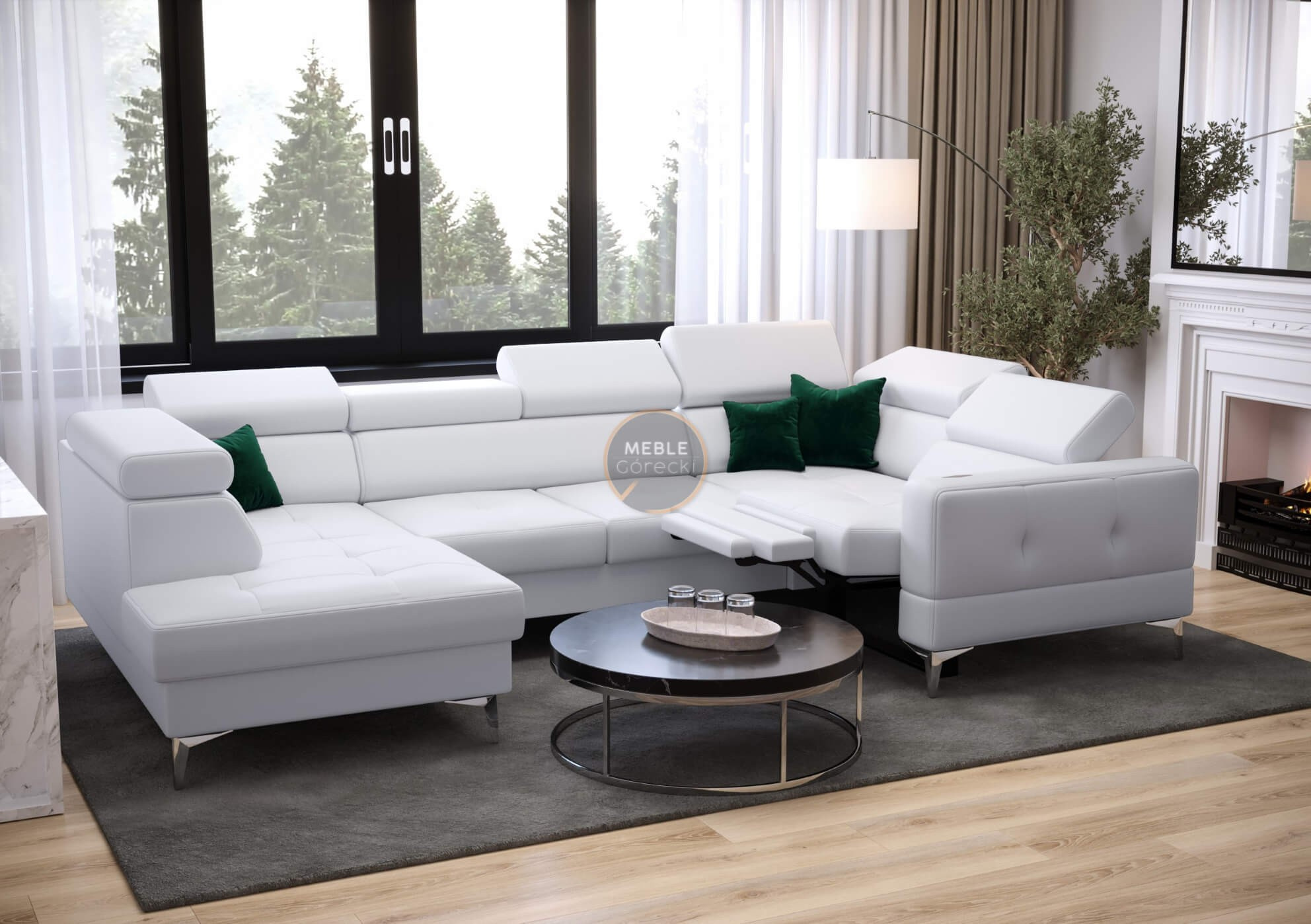 Rohová sedací souprava TOSCANIA MAX I , relax s funkcí spaní 170x350x185 cm - bílá eko kůže , pravá