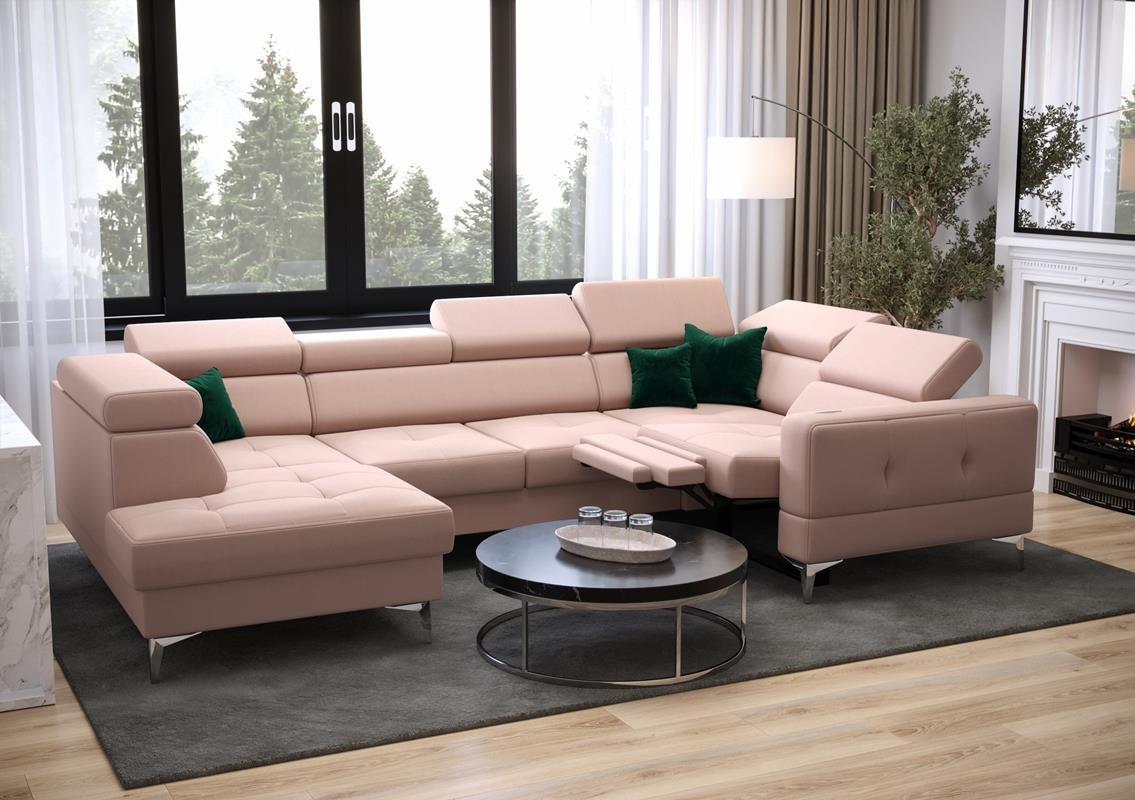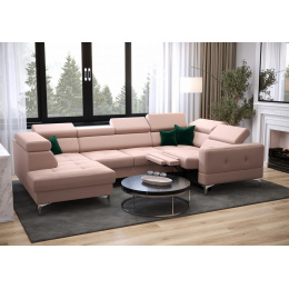 Rohová sedací souprava TOSCANIA MAX I , relax s funkcí spaní 170x350x185 cm - pravá, růžová