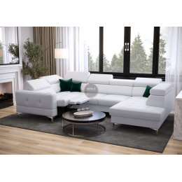 Rohová sedací souprava TOSCANIA MAX I , relax s funkcí spaní 170x350x185 cm přírodní kůže - bílá kůže , levá