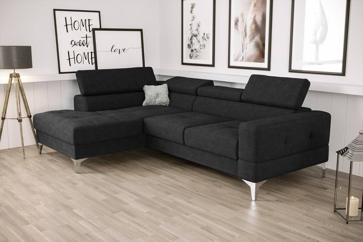 Rohová sedací souprava TOSCANIA MINI s funkcí spaní 170x250 cm - černá , levá