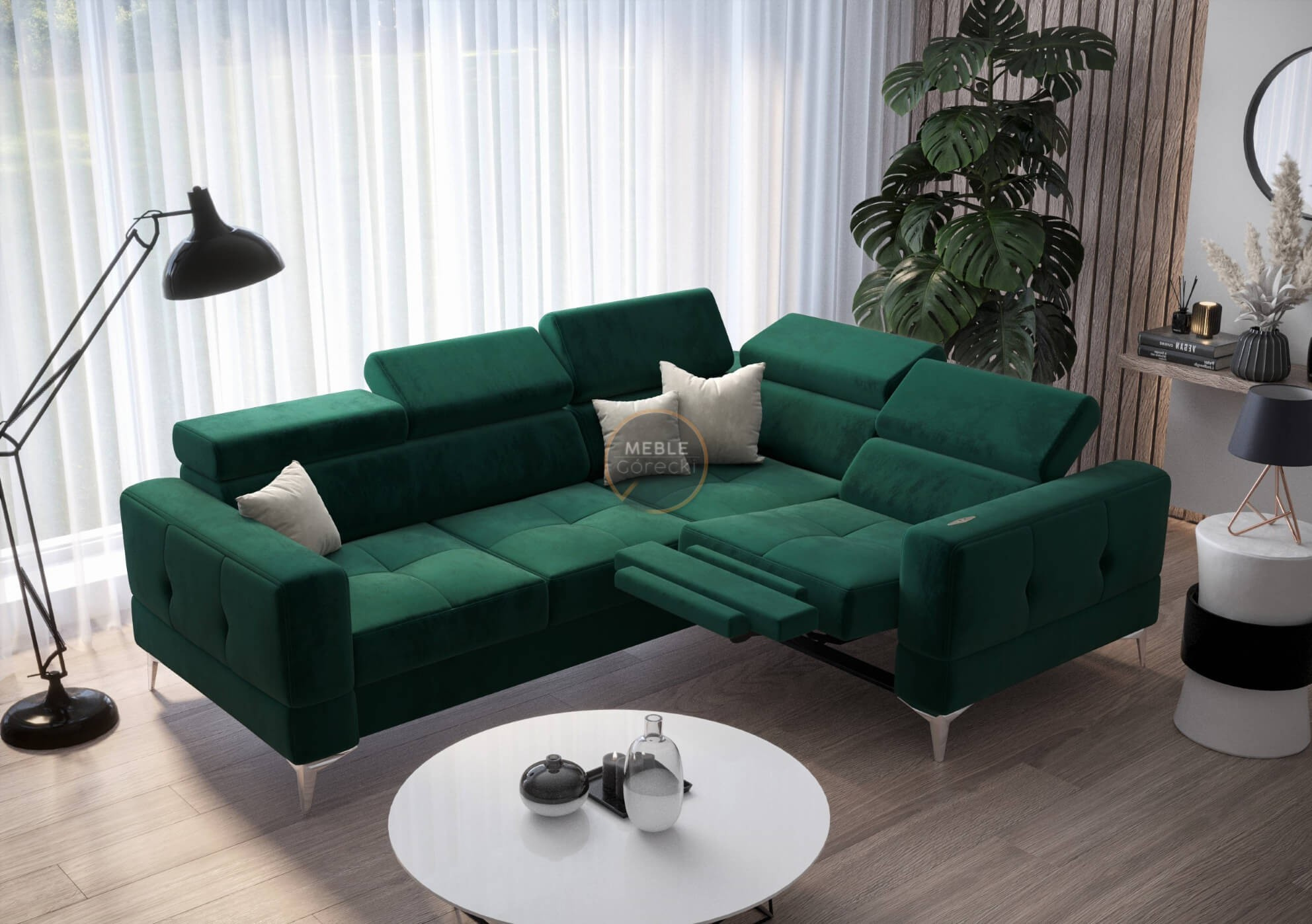 Rohová sedací souprava TOSCANIA , relax s funkcí spaní 185x250 - zelená , pravá
