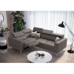 Rohová sedací souprava TOSCANIA , relax s funkcí spaní 185x250 přírodní kůže - šedá , levá