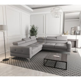 Rohová kožená sedací souprava TOSCANIA MAX 250×250 - šedá kůže , pravá