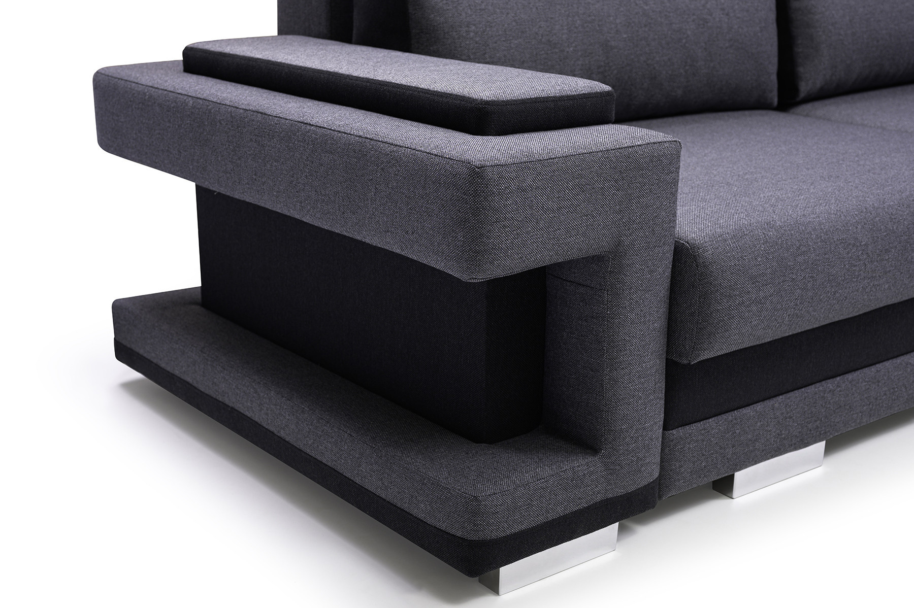 Rozkládací pohovka A2 ve tvaru písmene L je k dispozici v pravém i levém provedení, takže si ji každý bude moci přizpůsobit tvaru a rozměrům zařízeného interiéru. Model A2 s funkcí spaní je vybaven automatickou jednotkou MOS pro snadné rozložení; pod sedadlem je k dispozici prostorný úložný prostor na lůžkoviny. Rohová pohovka stojí na dřevěném rámu a chromovaných nohách, které zajišťují odolnost a stabilitu nábytku. Volně stojící kus nábytku A2 je na sedáku a opěráku vyplněn vlnitou pružinou a čalounickou pěnou T-30, které zajišťují odpovídající pružnost. Součástí rohové sedací soupravy jsou polštáře, které lze umístit na opěradlo - jsou ozdobně prošité a dodávají jí moderní vzhled. Nábytek je čalouněný látkou, jejíž barvy si lze vybrat podle individuálních preferencí ze vzorníku barev. Rohovou sedací soupravu s bočnicemi lze umístit jak do rohu místnosti, tak do jejího středu - zadní část nábytku je navíc esteticky čalouněná. Model A2 má dva vestavěné praktické úložné prostory - jeden je k dispozici ve formě výsuvné zásuvky, druhý je umístěn v jedné z područek. Rohová sedačka pro více osob nejen podtrhne jedinečný charakter zařízeného interiéru, ale také poskytne pohodlí a komfort i při mnohahodinovém odpočinku po náročném dni.