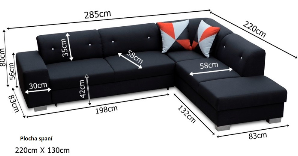 - rohová pohovka je k dispozici v pravém nebo levém provedení