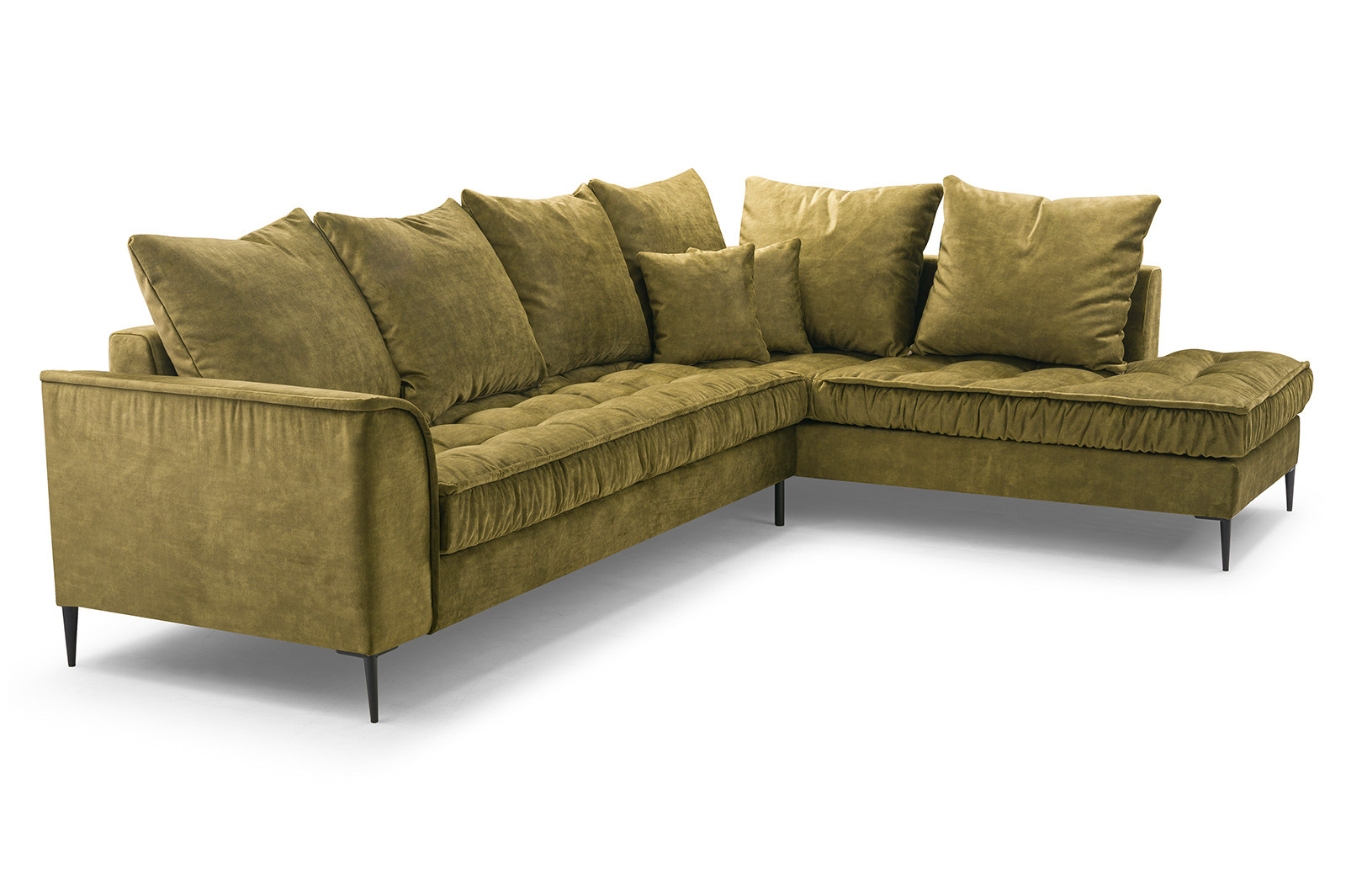 Prošívaná rohová pohovka LENA je kus nábytku ve skandinávském stylu. Skvěle se hodí do moderních i tradičnějších interiérů. Silikonová vložka s kuličkami použitá na sedadle zajišťuje neuvěřitelné pohodlí. Vysoké, pevné nohy jsou skvělým vizuálním doplňkem. Díky výplni z kvalitní vlnité pružiny a PU pěny je komfort odpočinku znatelně vysoký. Rohová sedací souprava LENA je kus nábytku, který dokonale zapadne do každého interiéru. Díky široké nabídce látek a barev si jistě vyberete něco podle svého vkusu.