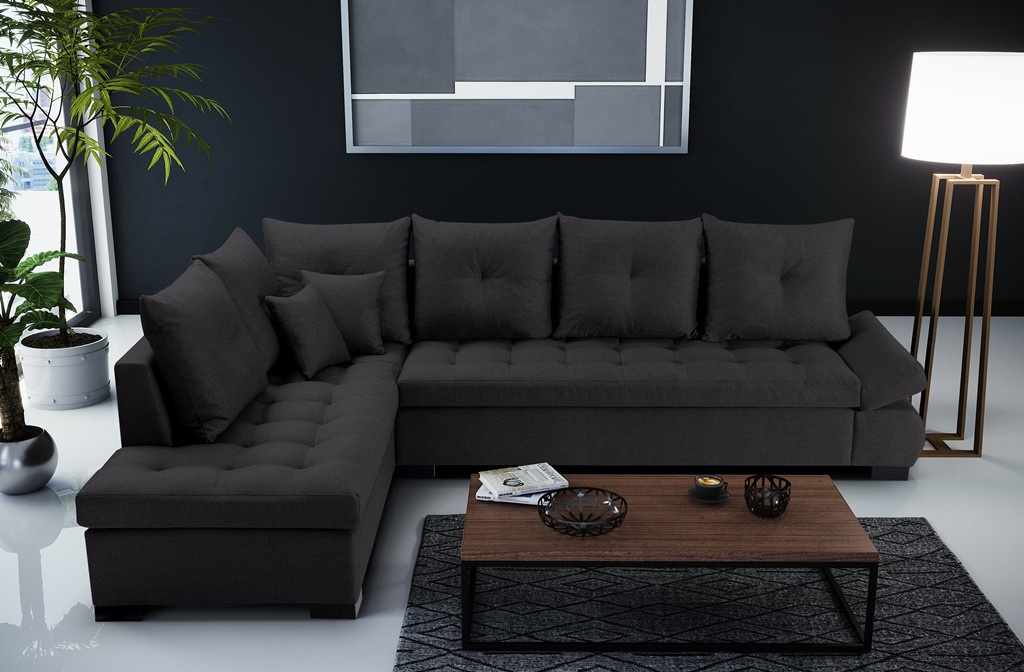 Rohová sedací souprava LORD má konstrukci ve tvaru písmene L a je k dispozici v pravostranném nebo levostranném provedení podle vašeho výběru. Nábytek je vyplněn vlnitou pružinou, čalounickou pěnou a rounem a zajistí pohodlí i po několika hodinách odpočinku nebo odpoledního spánku. Rohová pohovka je vybavena nastavitelnou područkou, která je ideální pro použití jako opěrka hlavy při odpoledním spánku. Rohová pohovka pro více osob s jednou stranou je čalouněná látkou, jejíž barvy si můžete vybrat z široké nabídky barev ve vzorníku. Stylová rohová pohovka zaujme prošívaným sedákem a polštáři umístěnými na opěradle, které jsou rovněž minimálně prošívané. Rohová sedací souprava LORD bude v zařízeném pokoji nejen působivě vypadat, ale zaručí také pohodlí při odpočinku s knihou v ruce nebo při sledování televize.