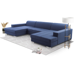 Rohová sedací souprava Mistral U je elegantní sedací souprava ve tvaru písmene U, která má poměrně univerzální tvar, takže ji lze bez větších problémů umístit ke stěně i doprostřed místnosti - jedná se o volně stojící kus nábytku s čalouněným opěradlem. Rozkládací rohová sedačka s rozkládáním, je vybavena 2 úložnými prostory a má funkci spaní. Stabilní a odolnou konstrukci tvoří dřevěný rám a prostor pod čalouněním je zakončen vlnitou pružinou a čalounickou pěnou, díky níž na nábytku nezůstanou nevzhledné otlaky ani deformace. Akcentem, který nábytku dodává originalitu a lehkost, jsou ozdobné stříbrné nohy. Rohová pohovka pro více osob je kus nábytku plně čalouněný kvalitní látkou, jejíž barevné provedení si můžete vybrat. Rohová sedací souprava AKITA U s bočnicemi v základním provedení . Sedací soupravu lze umístit doprostřed místnosti.