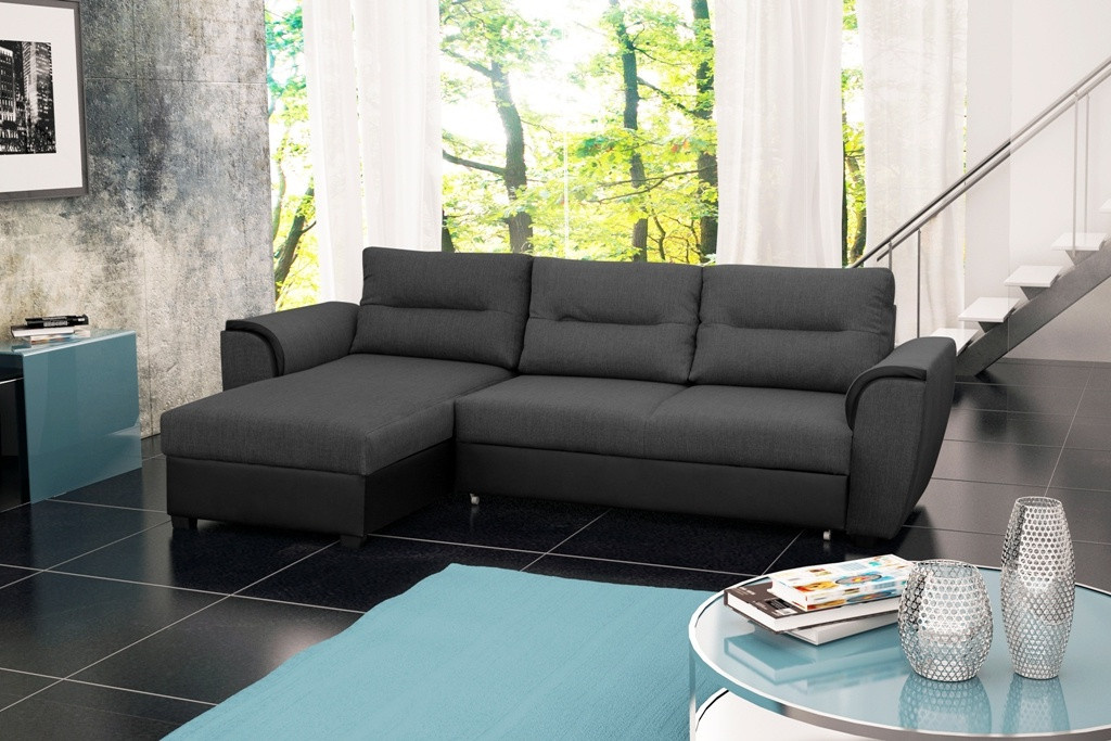 Moderní rohová sedací souprava TOMEK je ideální pro uspořádání interiéru obývacího pokoje, který je na jedné straně reprezentativním prostorem a na druhé straně místem pro odpočinek. Rohová sedací souprava ve tvaru písmene L je k dispozici ve dvou variantách výběru stran - pravé nebo levé -, takže ji lze přizpůsobit jakémukoli tvaru místnosti. Rohová sedací souprava TOMEK s bočnicemi na sedáku je vyplněna vlnitou pružinou a čalouněním z pěny T-30, takže na sedací soupravě nevznikají nevzhledné deformace způsobené sezením. Představená rohová sedací souprava s dřevěným rámem zaručuje svým uživatelům komfort a pohodlí při sezení, stejně jako pevnost své konstrukce, která je celá doplněna chromovanými nožkami. Protože je rohová pohovka volně stojícím kusem nábytku, má také čalouněná záda - lze ji umístit nejen ke stěně, ale také do středu místnosti. Model TOMEK je vybaven úložným prostorem na lůžkoviny pro uložení přikrývek, polštářů a peřin. Rohová sedací souprava s bočnicemi má funkci spaní, která umožňuje její rozložení. Nabízená rohová sedací souprava může být vyhotovena v široké škále barev.