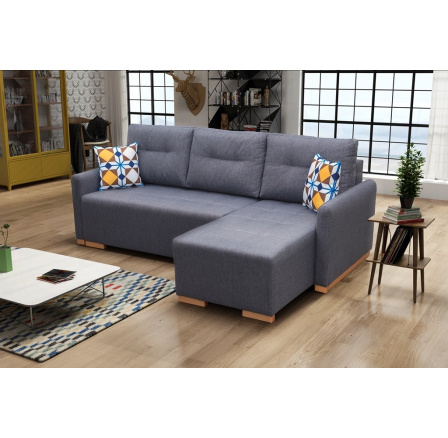 Rohová sedací souprava X1 je elegantní konstrukce, která stojí na dřevěných nohách, jež podtrhují moderní charakter korpusu. Rohovou sedací soupravu s bočnicemi ve tvaru L lze různou látkou. Představený rohový model má kromě dřevěných nohou také dřevěný rám, který zaručuje dostatečnou odolnost a stabilitu. Rozkládací rohová pohovka X1 je k dispozici v pravém nebo levém provedení podle vašeho výběru. V rohu je k dispozici úložný prostor na lůžkoviny, do kterého lze bez větších problémů uložit přikrývky, polštáře a peřiny. Rohová pohovka X1 s funkcí spaní zajistí svým uživatelům bezpečný a pohodlný spánek. Barevné provedení nábytku si můžete vybrat z široké škály barev dostupných ve vzorníku. Sedák je spolu s opěradlem v podobě tří prošívaných polštářů vyplněn vlnitými pružinami a čalounickou pěnou, které se starají o zachování odpovídající pružnosti nábytku, jenž tak rychle nepodléhá opotřebení.