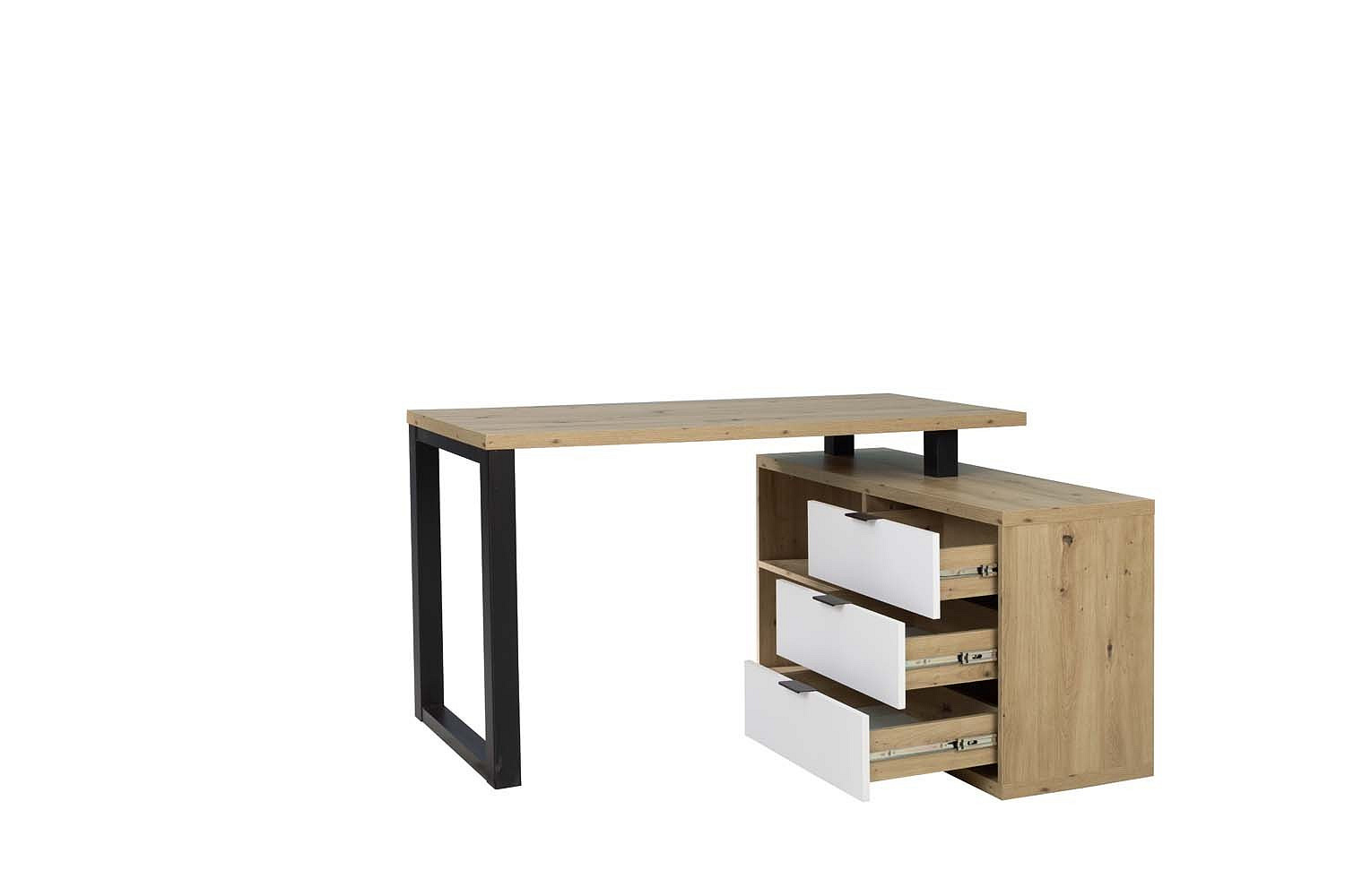 Rohový stůl MARO II Artisan+Černá+Bílá