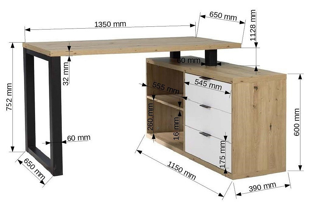 Rohový stůl MARO II se ideálně hodí do studentského pokoje, kanceláře nebo pracovny. Díky své rohové konstrukci se vejde i do malých místností. Nábytek je vybaven třemi zásuvkami a prostornou policí, což poskytuje dostatek místa pro uložení kancelářských potřeb. Psací stůl MARO II je praktický a univerzální nábytek, který se jistě hodí do většiny interiérů.
