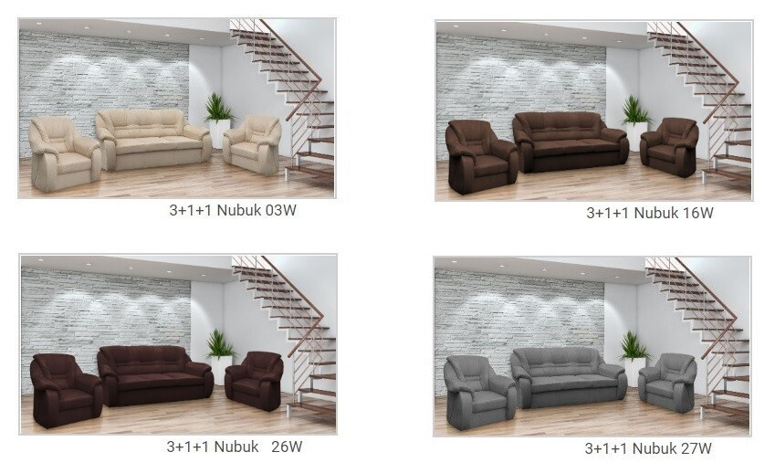 - Na hlavní fotografii je souprava vyobrazena v látkovém potahu Nubuk 27W - šedá