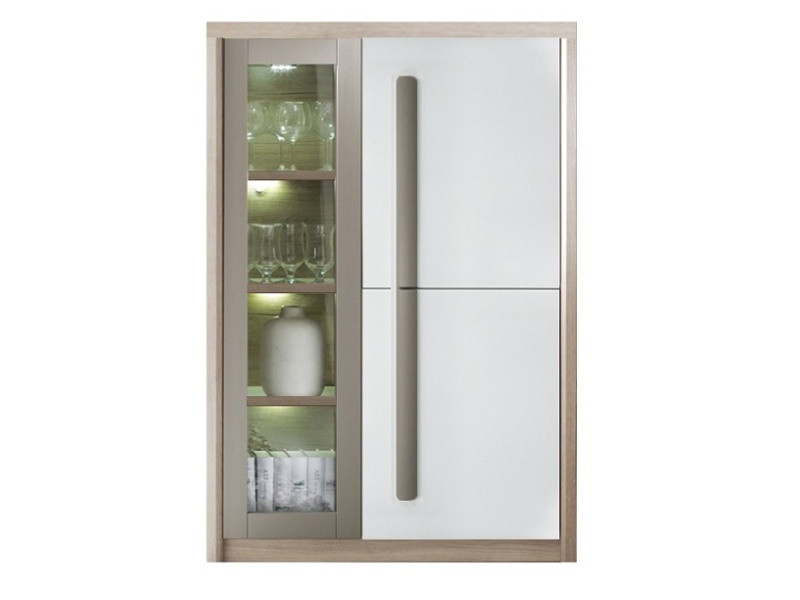 Systém ROMA je moderní nábytek vyrobený z laminované desky. Dostupná v barvách, jak je vidět na obrázku jasan s bílým leskem s šedými doplňky.