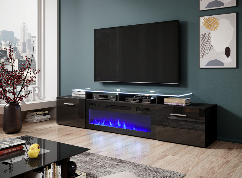 RTV KABINET (možnost instalace krbu, nutno objednat zvlášť, CAMA-KOMINEK...) Rozměry: š/s/g- 48/190/37 cm Kostra: 16 mm laminovaná dřevotřísková deska, splňuje požadavky CARB Přední strana: 16 mm lesklá MDF deska, splňuje požadavky CARB Nožičky: plast Rukojeti: plast Sklo: 8 mm tvrzené sklo, frézované-trapézové Rozměry: 202x43x12 Hmotnost: 42 kg